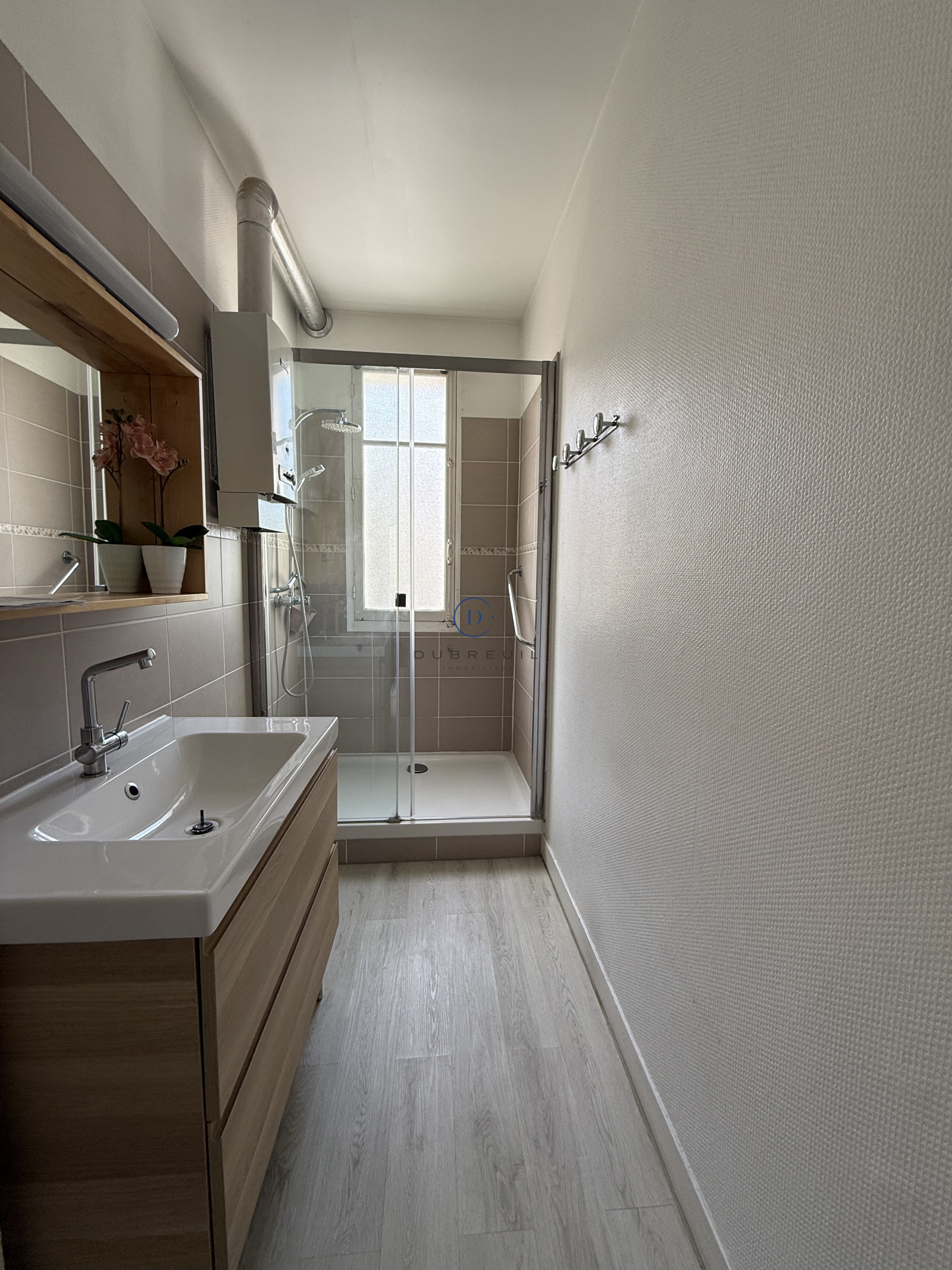 Chauffage et eau chaude individuels gaz, double vitrage, DPE classé E.