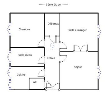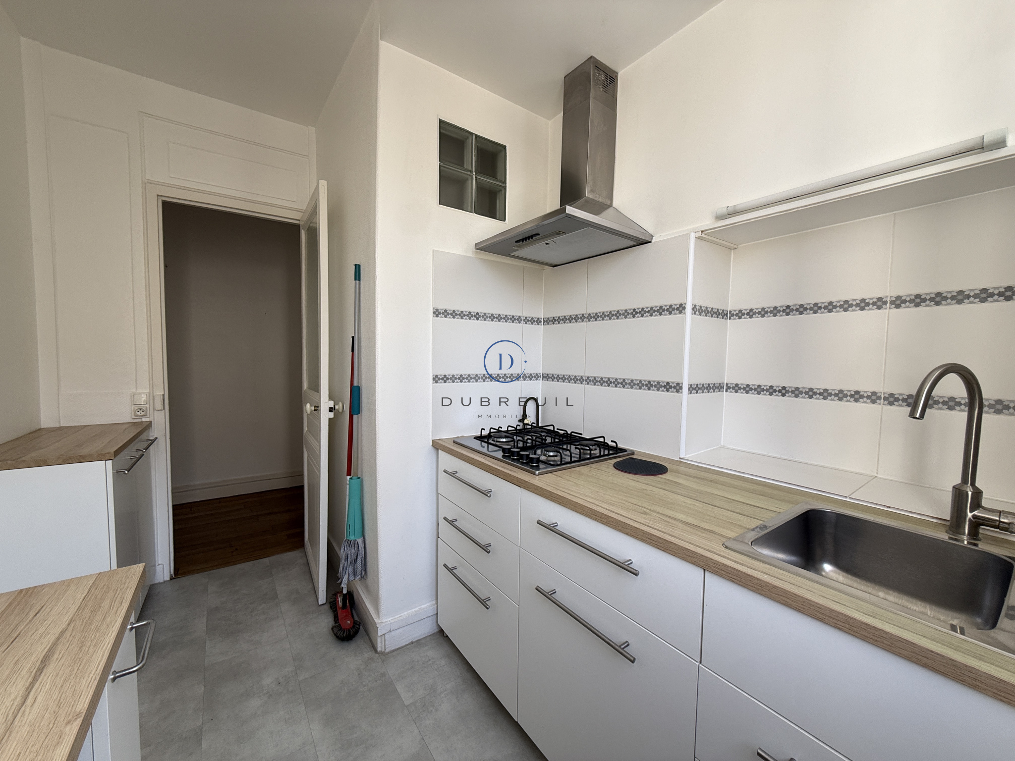 Il se compose d'une entrée, un double séjour (ou séjour et une chambre), une cuisine séparée aménagée et équipée d'une plaque au gaz et d'une hotte, une chambre sur cour, une salle d'eau, un WC séparé, un débarras.