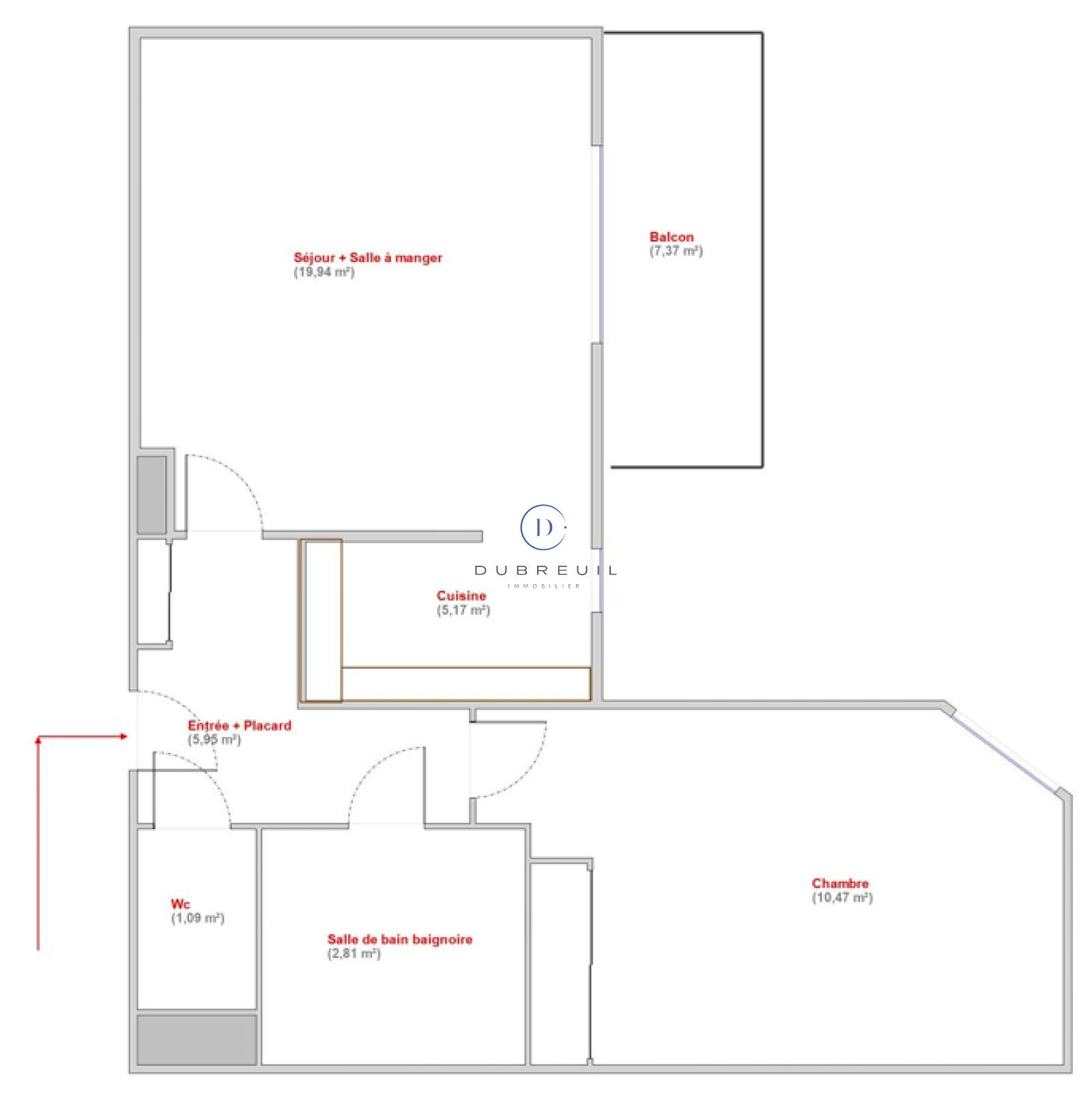 Il se compose d'une entrée avec PLACARD, un séjour de 20 m² exposé S/E donnant sur un BALCON de 7,37 m² avec vue sur les espaces verts de la copropriété, une cuisine AMERICAINE aménagée, une chambre avec PLACARD (parquet neuf), une salle de bains et un WC séparé. Une CAVE et un emplacement de PARKING en sous-sol complètent ce bien idéal pour un PRIMO-ACCEDANT ou un INVESTISSEUR.