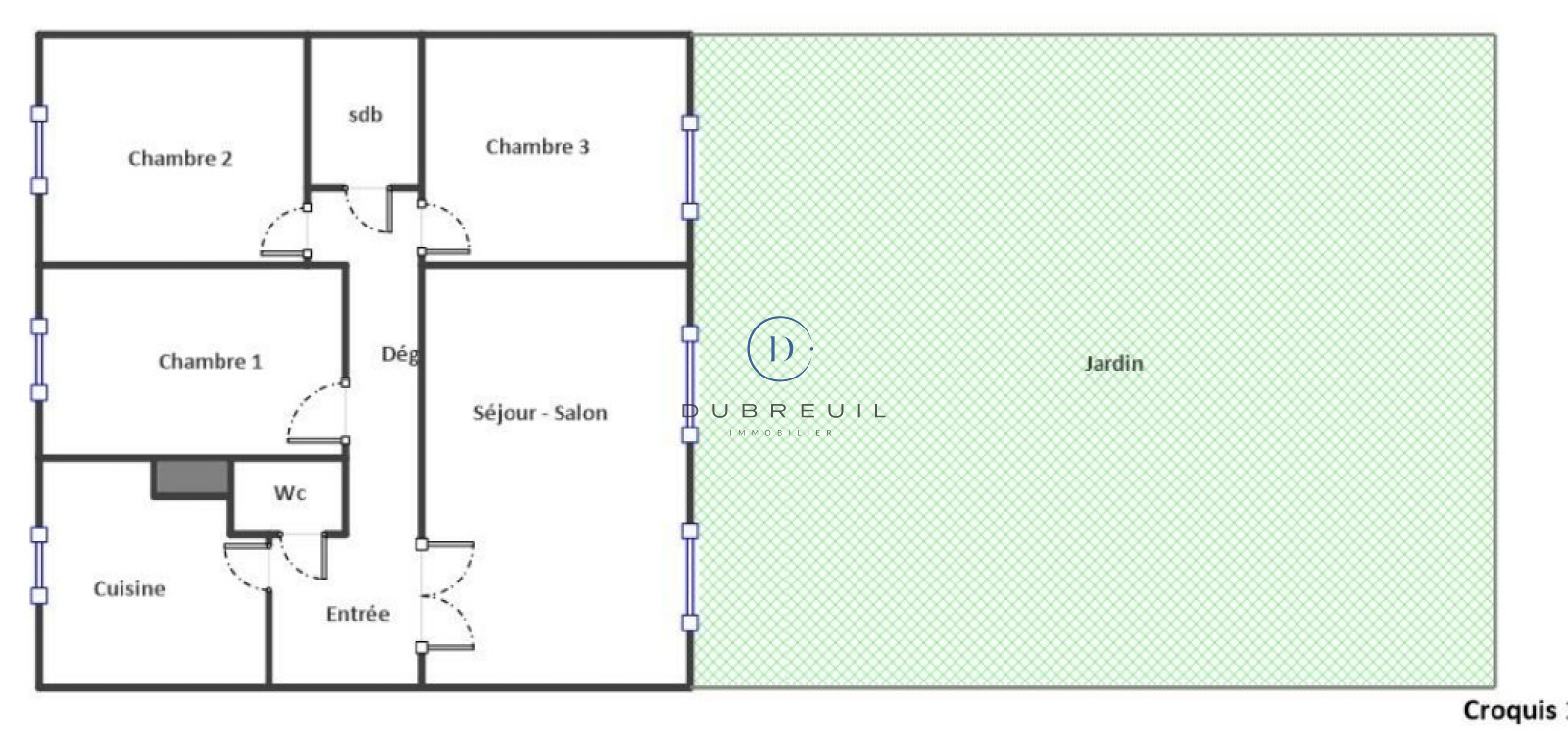 Il se compose d'une entrée avec placard, un séjour de 18,55 m² exposé Sud Est donnant sur une terrasse et un jardin de 100 m², une cuisine séparée aménagée, 3 chambres dont une sur jardin, une salle de bains, un WC séparé. Une cave en sous-sol complète ce bien. Professions libérales acceptées.